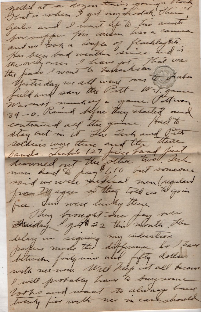 Can’t go anywhere at night now, but one thing I don’t spend so much money anyway. Have a football to kick around and so helps pass away the time.