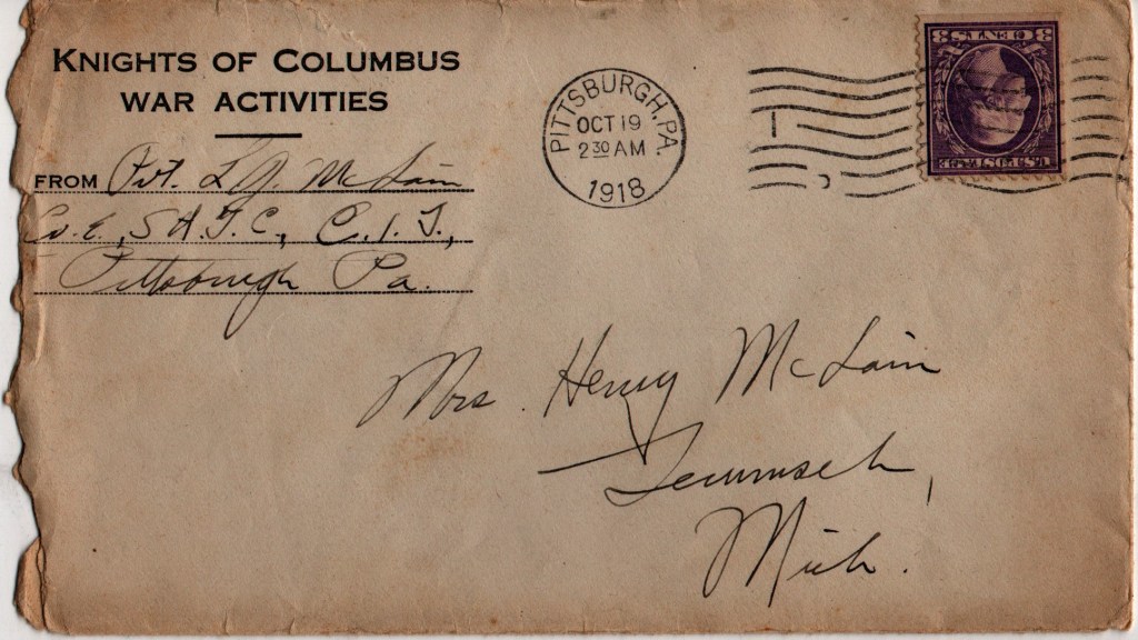 Leigh McLain went to Carnegie Tech in Pittsburgh, PA in 1918. He joined the Army and as Carnegie had a military training camp during the First World War, was in the military before he started his classes. Fortunately for him he was never deployed but he was involved in the 1918 Spanish Flu pandemic where he worked in a lab and as an orderly, social distanced and lived in a tent. Here are his letters describing what that was like.
